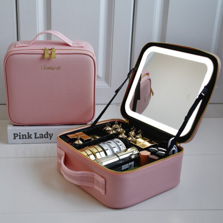 תיק איפור מקצועי מעור עם מראה ולד מובנה