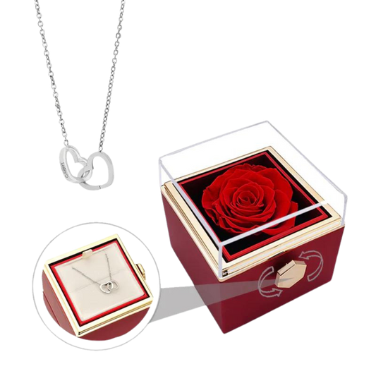 קופסת ורד מסתובבת עם שרשרת זוגית